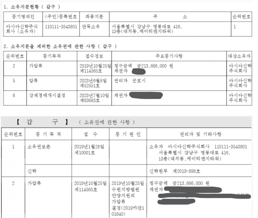 1. 아래와 같이 신탁재산에 개인에 의한 가압류가 설정되어 있고, 또한 강제경매가 진행되고 있는데, 어떻게 신탁재산에서 저런 행위가 가능한지 문의드립니다.