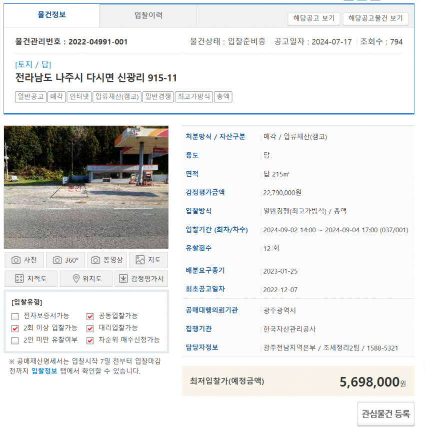 현재 공매 물건중에서 유찰이 많이 된 물건으로 입찰을 고려하고있습니다.