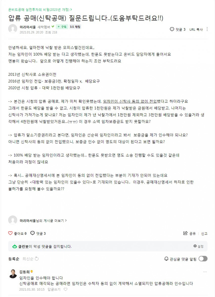 답변완료 | 신탁공매 투자의 비밀 무료강의(9강)